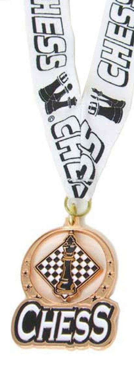 Bronze Spinning Chess Medal with 30" Ribbon – 2" Diecast Design