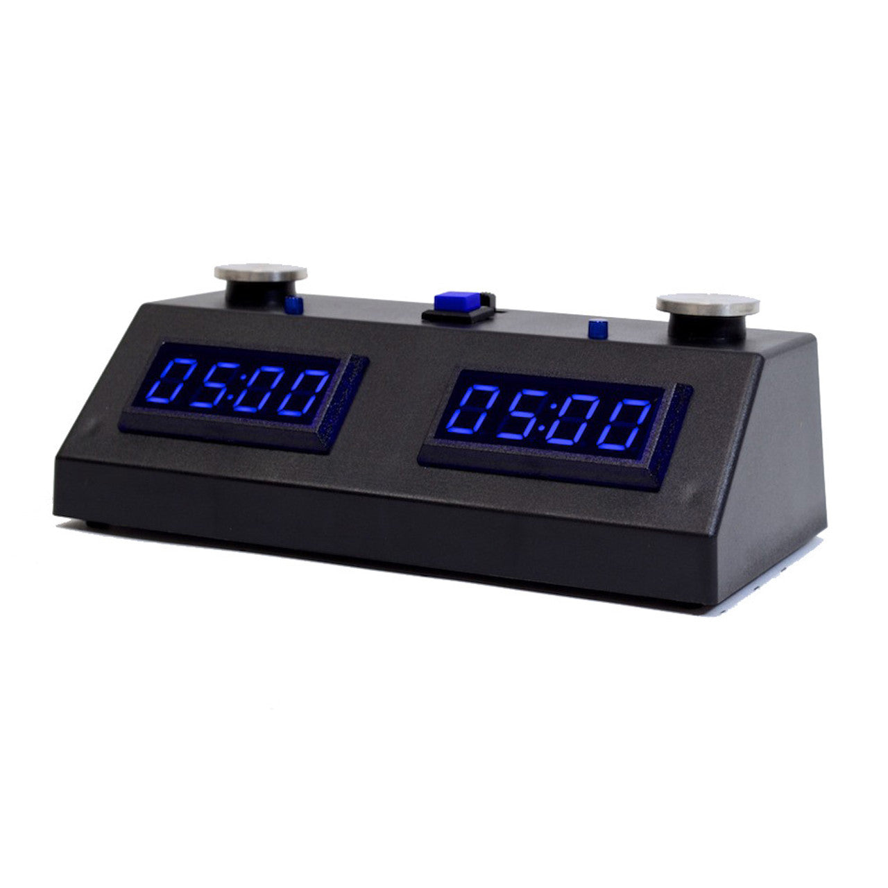 Premium ZMF-II digital chess timer featuring stainless steel touch-sensing buttons for precise, responsive control and a vibrant LED color display for enhanced visibility in any environment. Offers easy-to-use programming menus, multiple preset modes, and dual timer functionality to accommodate a variety of game formats. Runs on 4 C batteries, ensuring dependable performance for tournaments, clubs, and home play.